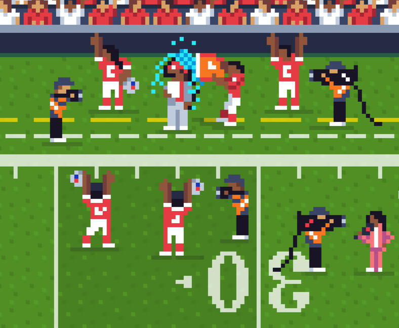 You probably know us from Instagram or Twitter, where we go by the name @pixelnfl. Or maybe from the mobile game, Retro Bowl, for which we drew the art. Or perhaps you've seen some of our stuff on NFL team social channels.